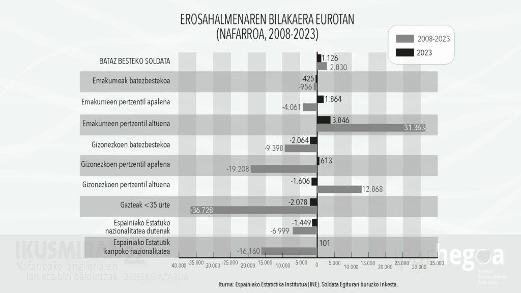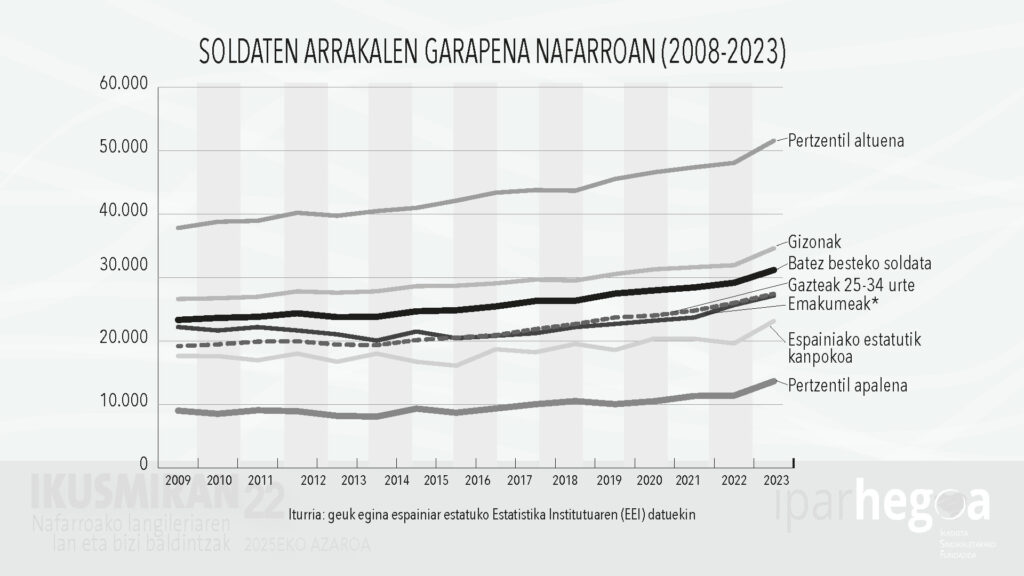Nafarroan batez besteko soldata igo da azken urtean, baina desberdintasun sozial zein pobrezia egoerak handitzen ari dira. Hortaz, sortzen den aberastasuna gero eta modu desorekatuagoan banatzen da, lurralde barneko ezberdintasunak areagotuz. Horixe egiaztatu dugu Ikusmiran 22, Nafarroako langileriaren lan eta bizi baldintzen inguruko azterketan.